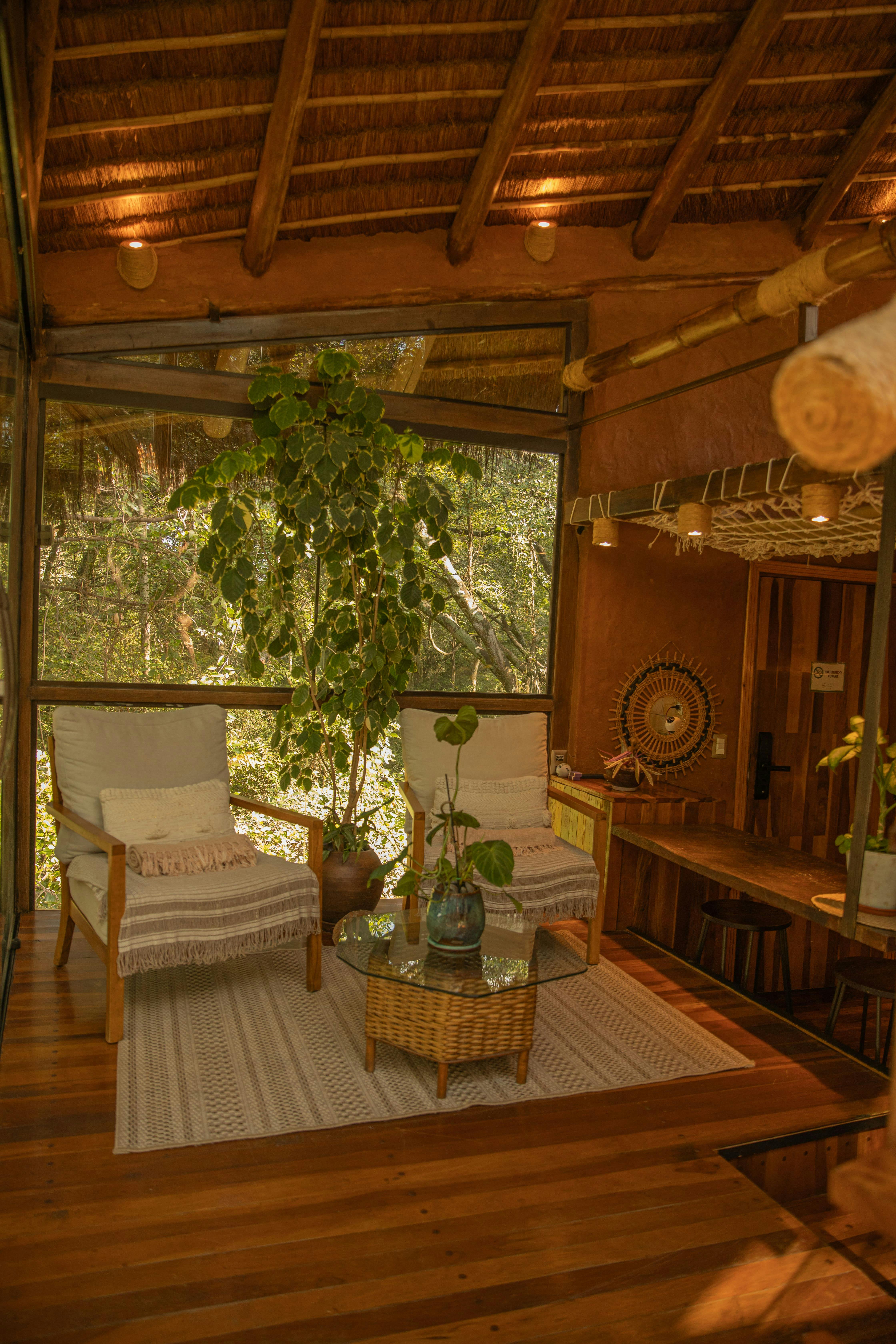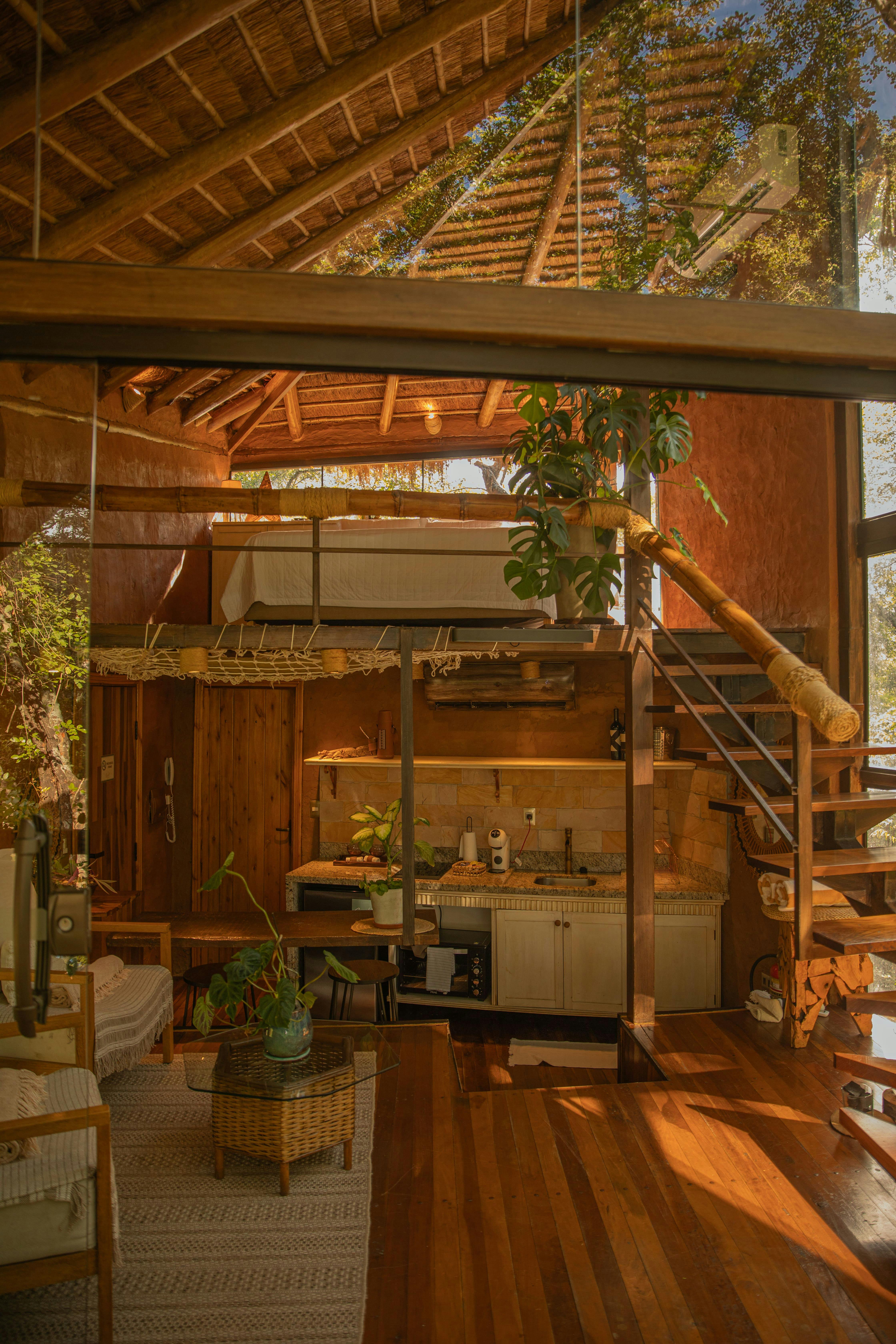 Bungalow Andromeda It is a Vip Satori Bungalow, for two adults, located in a restricted-access natural forest area, on top of the hill.Andromeda has the 5 elements; fire with the bonfire area, earth with the Zen garden where we recommend walking barefoot on its 25cm thick sand, water with the waterfall that runs through the entire bungalow and ends in a cutwater that will soon have koi carps, air with the large windows and angel caller, and the fifth element is you, the soul.It is the most elegant bungalow and has three levels. The first level of Andromeda has a fully equipped kitchen, on the second level we have the living room, and on the third level the bedroom.Andromeda has two balconies, one with a heated pool and the other with a view of the forest. It is considered the most private bungalow for being surrounded by trees.Enjoy a unique experience and enjoy Andromeda at its best.Bungalow Orion It is a Vip Satori Bungalow, located in a restricted-access natural forest area, on top of the hill.Its name is due to the Orion constellation, which it evokes with a hexagonal glass roof, whose six angles indicate the number of stars that make Orion. The bungalow has a silhouette similar to a mushroom in the middle of the forest.A bamboo arch welcomes you to the private garden, where the vehicle can be parked. Orion's façade amazes from the moment you arrive, showing off its large terrace with lounge chairs and a heated pool.To the left, a bonfire place with log seats awaits the sunset; to the right, an iron and jute hammock invites you to relax in the rest area.Up the access stairs, a box of shoes awaits, to enter this experience of disconnection from the world, barefoot. Orion’s first floor presents an equipped kitchen, a living room with warm colors and a terrace with a wooden floor.Preparing dinner on the electric grill, in the large kitchen space or tasting Satori's dishes at the outdoor table, are some experiences that Orión invites you to enjoy.The bedroom is located on the second floor, at a height that allows you to enjoy the view of the lake, the forest and the beautiful terrace.But what makes Orion unique, is a glass circle on the living room floor, guarded by mandalas, a point where you can see the sky and the ground without limits, enriching the reconnection with oneself and nature, that Satori invites you to experience.Bungalow Pleyades It is a Luxury Satori Bungalow, for two adults, located in a restricted-access natural forest area, on top of the hill.Named after the daughters of the Titan Atlas, Pleiades is shaped like a german house and is located at treetops height, so its glass walls give the feeling of being inside the forest.A private garden, with a rest area and a Paraguayan hammock, invites you to discover this space with a disruptive design and a structure made of wood, stones, glass and a thatched roof. It also has parking, and it’s the only bungalow with its own vehicle access from Satori’s main access.Pleiades has a magnificent view of the Ypacaraí Lake and the Patiño hill. You can draw the curtains and feel embraced by nature; rest on the nautical hammock, suspended in the air, enjoy the transparent pool or watch the sunset relaxed in lounge chairs, sheltered by coconut blankets brought from Brazil.The kitchen has everything to be able to cook, or well, enjoy our delicious menu; a living area with a sofa bed, a private bathroom and an outdoor deck with an electric grill, table and chairs for breakfast outdoors and a pool with a waterfall.Give yourself the pleasure of enjoying the forest and the privileged view of the Ypacaraí Lake from Pleiades’ unique space .Bungalow Casiopea It is a Luxury Satori Bungalow, our only land bungalow and the origin of Satori.Named after the constellation, its name is due to Cassiopeia, mother of Andromeda and wife of King Cepheus of Ethiopia. This mystical bungalow, with a tropical Zen setting and a terrace with a glass roof, has a deep view of the hill and the Ypacaraí Lake.Designed for families, groups of friends, people with motor disabilities and the elderly, Cassiopeia is our largest bungalow, where you can also bring your canine pet.The meetings take place in the wood and straw barbecue area, which has a wall grill with a window, a bar with seats and a laundry space, a round table with 6 chairs, a ceiling fan with view of the pool, sunbathing area and outdoor garden. It also has a bonfire place with logs as a seat, for long evenings full of stories.It has the largest pool, with a waterfall of rocks and plants, two lounge chairs and a straw umbrella to protect from the sun.The kitchen is spacious, with a cabinet under a wooden counter and complete crockery. Family refrigerator, various appliances, large tall glass table and armchairs. In the same environment there is a living room with a very comfortable sofa, air conditioning, ceiling fan and JBL Bluetooth sound system.It has a double bedroom, wardrobe and ceiling fan; and a room with three beds and a chest of drawers with additional blankets. Both have hot/cold air conditioning.There is a main bathroom, with a toilet, bidet and shower, which has a safety bar for people with mobility disabilities or the elderly. And a second bathroom, with a shower.Cassiopeia also has its space in height, which is accessed by a spiral staircase. It is a relaxation area with a wonderful view of the lake, the hill and the pool, where you can meditate at sunrise or share family breakfast.Bungalow Lyra It is a Premium Satori Bungalow, for two adults, located in a restricted-access natural forest area, on top of the hill.It has two floors, at treetops height, in the midst of a lush private tropical forest and its structure is made of wood, stones, glass and a thatched roof. It has a cutting-edge, modern, warm and disruptive design, in the shape of a sea clam, although with pyramidal 3D projections in certain areas.The experience that Lyra offers, is the most distinctive of Satori for h