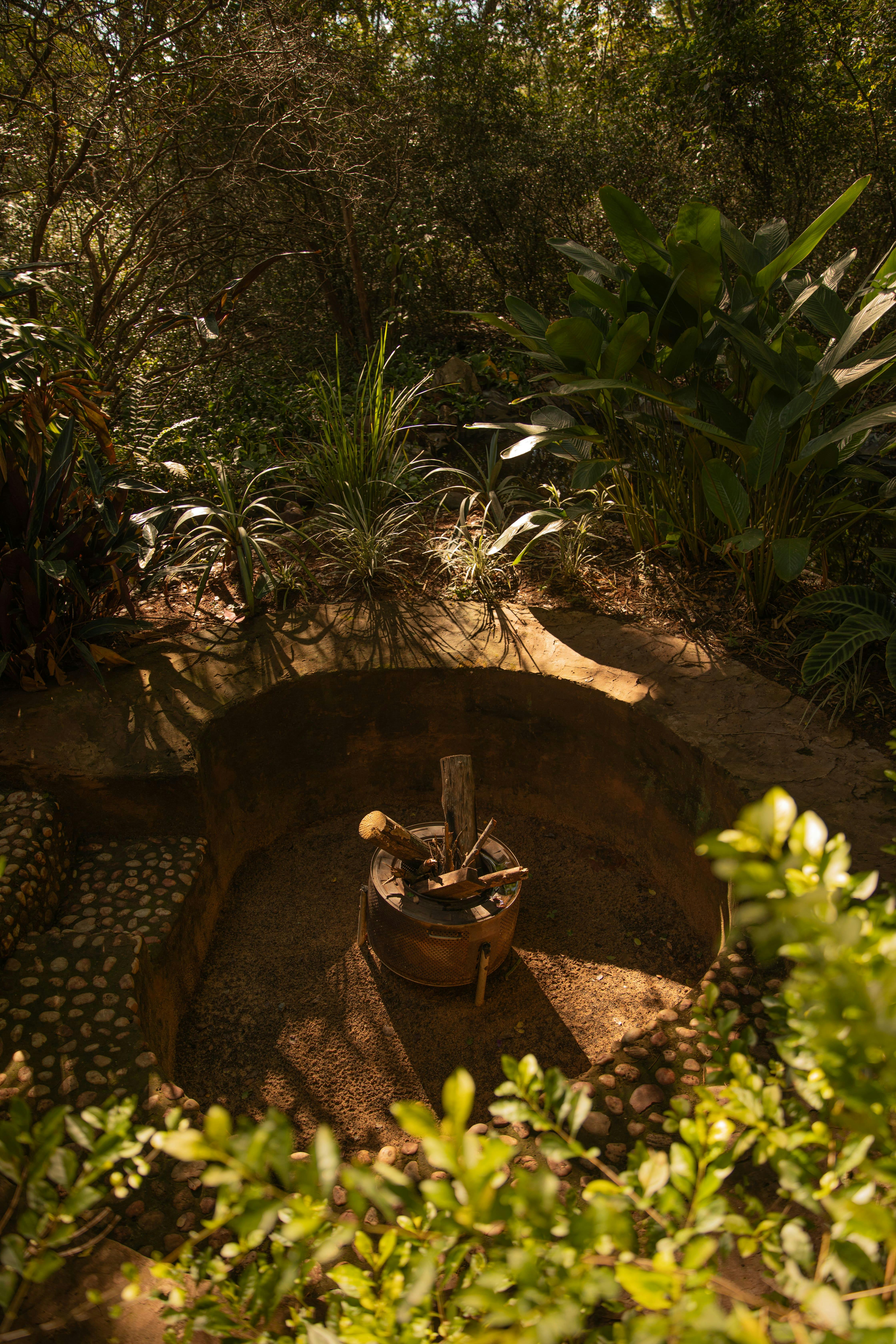 Andromeda has the 5 elements; fire with the bonfire area, earth with the Zen garden where we recommend walking barefoot on its 25cm thick sand, water with the waterfall that runs through the entire bungalow and ends in a cutwater that will soon have koi carps, air with the large windows and angel caller, and the fifth element is you, the soul.